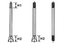 | Diâmetro da Haste d | Quadrado (mm) | H1 | Boca de Chave (mm) | H2 | Rosca BSW | Massa/metro |
