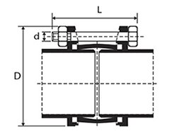 Junta Gibault em ferro fundido dúctil, conforme norma NBR 7675, para transporte de água bruta ou tratada.