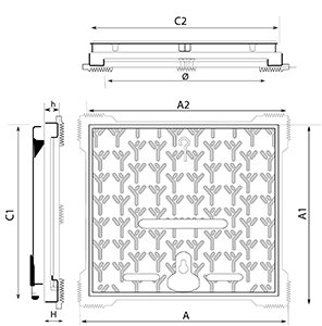 Tampão com abertura articulada ou deslizante, sistema de apoio dinâmico em 3 pontos garantindo maior estabilidade e área de apoio dentada na base do telar. Fabricado conforme NBR 10160 e EN 124, Classe B125, recomendado para uso em calçadas ou locais para circulação de pedestres e áreas de estacionamento de carros de passeio.