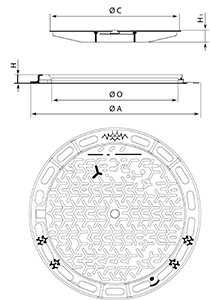 Tampão DN 350 mm, não articulado e com anel antirruído. Fabricado conforme NBR 10160 e EN 124, Classe B125, recomendado para uso em calçadas ou locais para circulação de pedestres e áreas de estacionamento de carros de passeio.