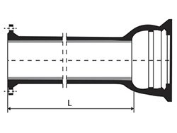 Tubo com flange e bolsa. Tubo de ferro fundido dúctil fabricado conforme norma NBR 7675. Montado por dilatação térmica, interferência e roscado, é destinado para transporte de água bruta ou tratada, podendo ser com ou sem aba de vedação.