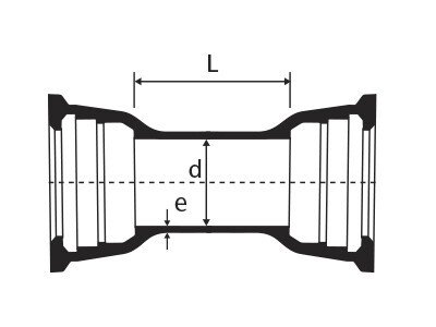 Luva Industrial com bolsas JGS, JTI ou JTE, em ferro fundido dúctil, conforme norma NBR 7675, para água salgada.