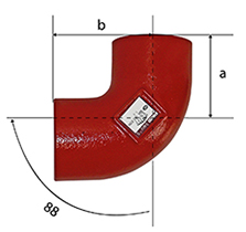 Joelho de 88° SMU fabricado em ferro fundido, conforme norma NBR 15579, para sistema EPAMS.