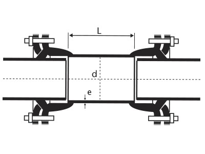 Luva de Correr Industrial com Bolsa Junta Mecânica, em ferro fundido dúctil, conforme norma NBR 7675, para transporte de água salgada.