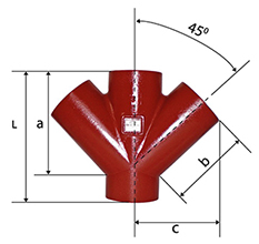 Junção Dupla de 45° SMU fabricada em ferro fundido, conforme norma NBR 15579, para sistema EPAMS.