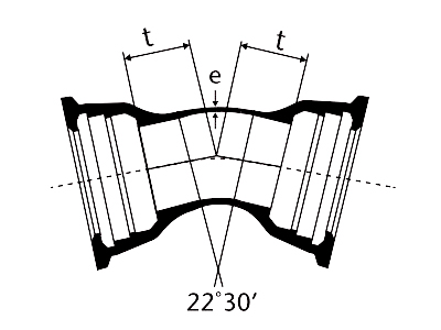 Curva de 22°30' em ferro fundido dúctil, conforme norma NBR 7675, para transporte de água bruta ou tratada.