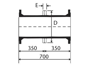 Toco com flanges e aba de vedação e ancoragem em ferro fundido dúctil, conforme norma NBR 15420, para transporte de esgoto.