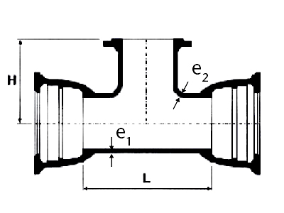 Tê com bolsas JGS, JTI e JTE e flange, em ferro fundido dúctil, conforme norma NBR 15420, para transporte de esgoto.