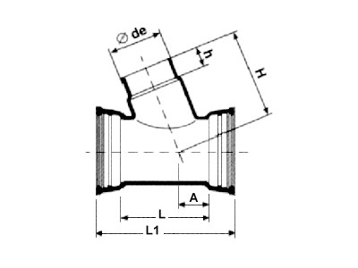 | DN Coletor | DN Derivação | L | L1 | A | H | h | de | Massa |