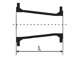 Redução com flanges, podendo ser concêntrica ou excêntrica, em ferro fundido dúctil, conforme norma NBR 7675, para transporte de água bruta ou tratada.